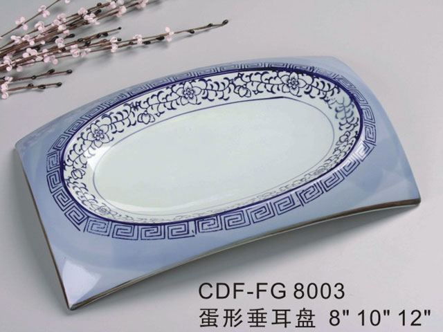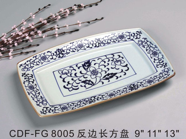 反边长方盘仿古青花瓷