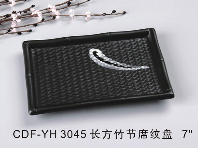 长方竹节席纹盘黑瓷系
