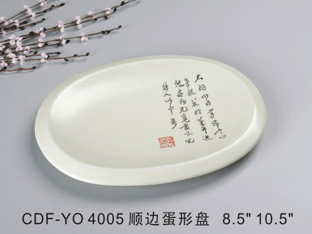 顺边蛋形盘米黄古纹瓷