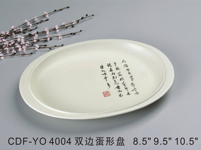 双边蛋形盘米黄古纹瓷