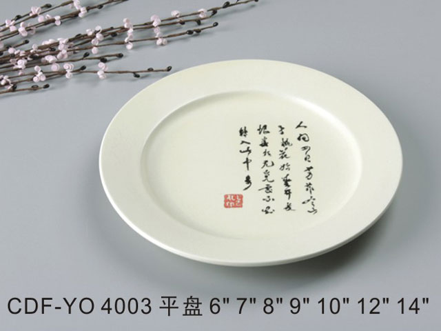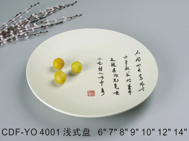 浅式盘米黄古纹瓷