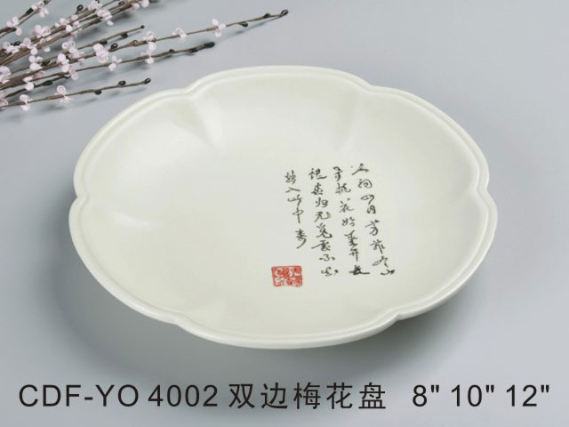 双边梅花盘米黄古纹瓷