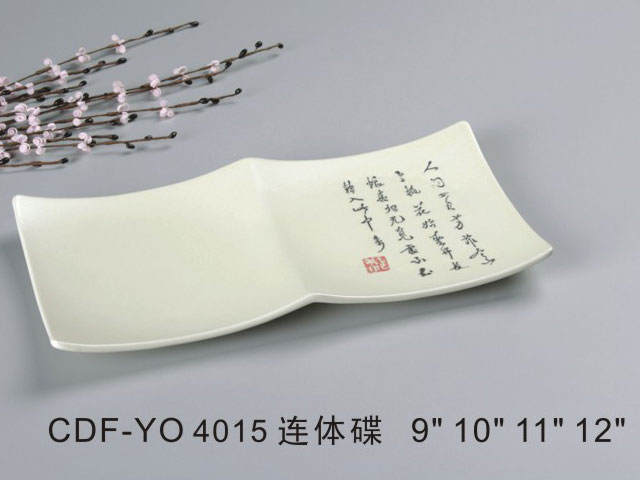 连体碟米黄古纹瓷
