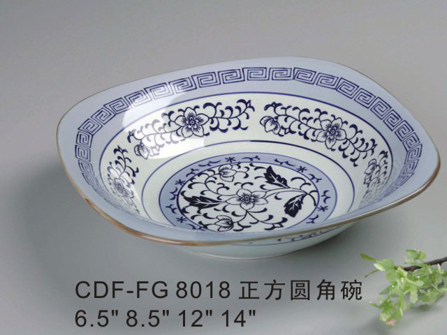 正方圆角碗仿古青花瓷