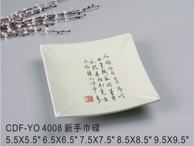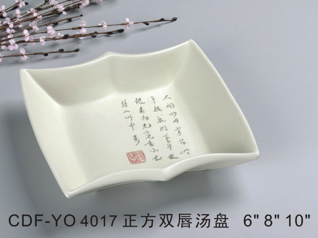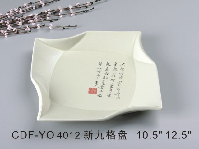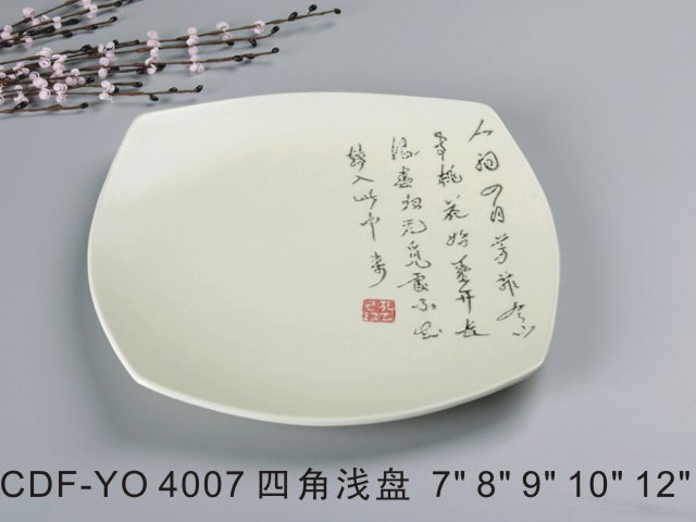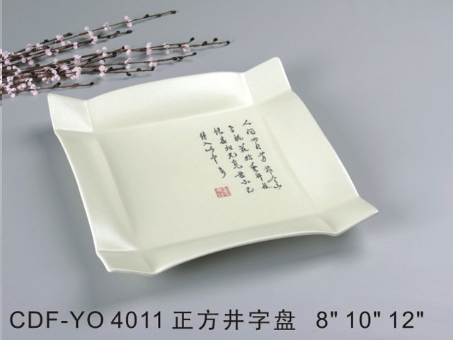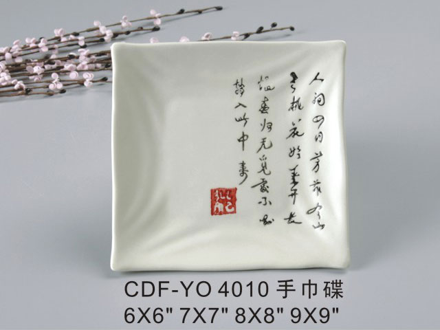 四角浅盘米黄古纹瓷