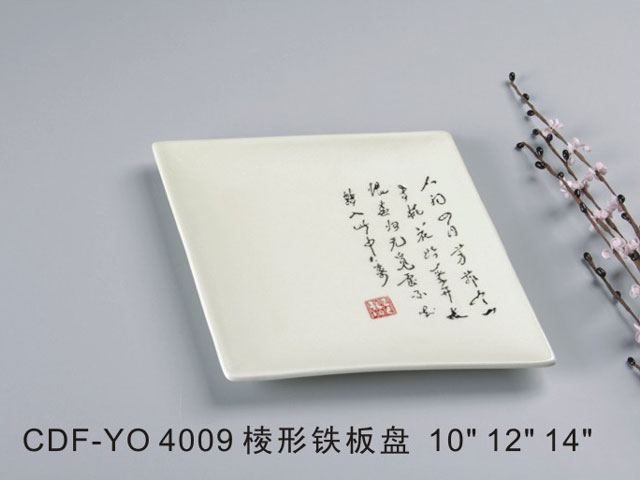 棱形铁板盘米黄古纹瓷