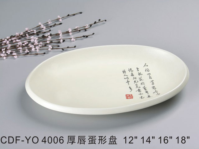 厚唇蛋形盘米黄古纹瓷