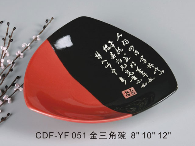 順边三角盘黑红瓷