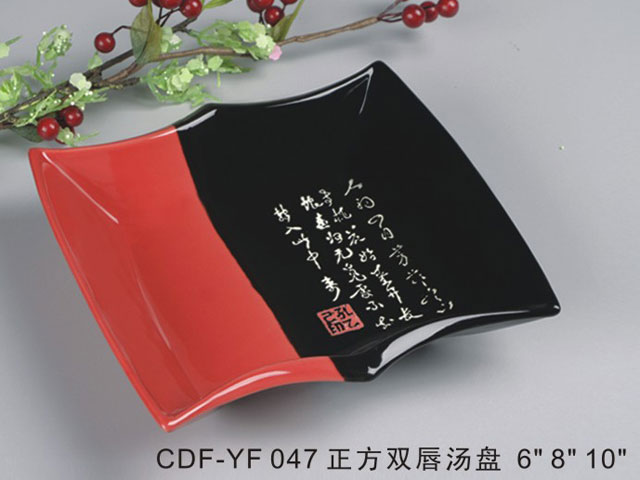 正方双唇汤盘黑红瓷