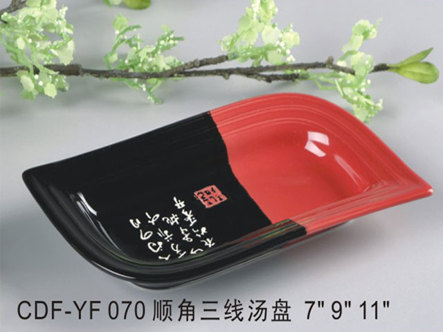 顺角三线汤盘黑红瓷