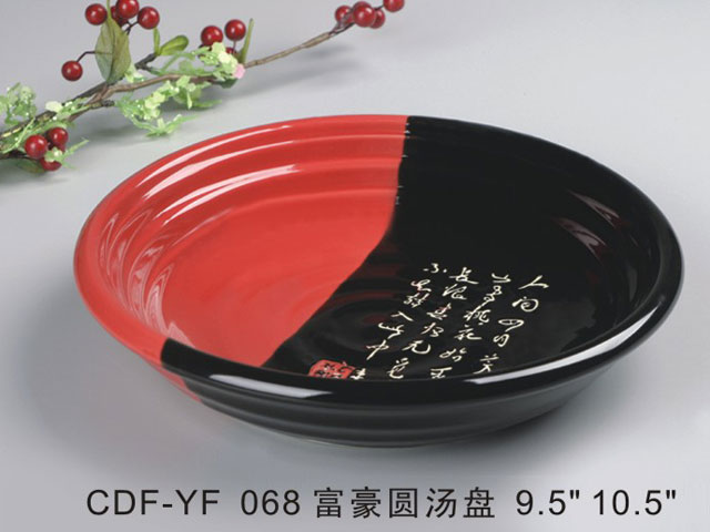 富豪圆汤盘黑红瓷