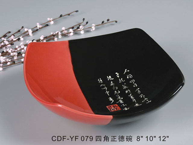 四角正德碗黑红瓷