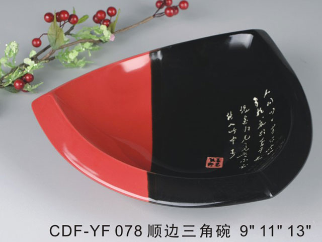 順边三角碗黑红瓷