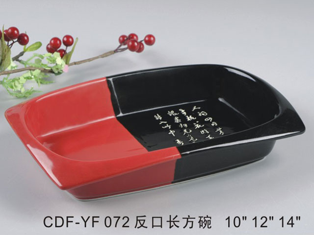 反口长方碗黑红瓷